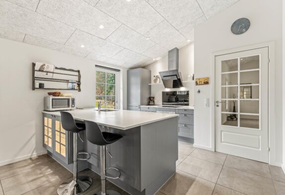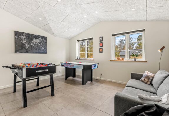 Es gibt insgesamt 5 schöne Schlafzimmer, 2 Badezimmer, 1 Sauna und ein grosser, heller und offener Wohn- und Essbereich mit Küche. Das tolle Design wird euch begeistern – hier passt einfach alles harmonisch zueinander. In einem kleinen extra Zimmer steht ein Kicker sowie ein zusätzlicher TV für Spieler – eure Kinder werden sich hier also auch bestens amüsieren können.