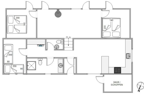Neben den offenen Wohn- und Essbereich bietet das Haus euch ein Duschbad mit Fußbodenheizung und eine Gästetoilette. Familien mit Kindern schätzen besonders die Ausstattung mit einer Waschmaschine und Trockner.