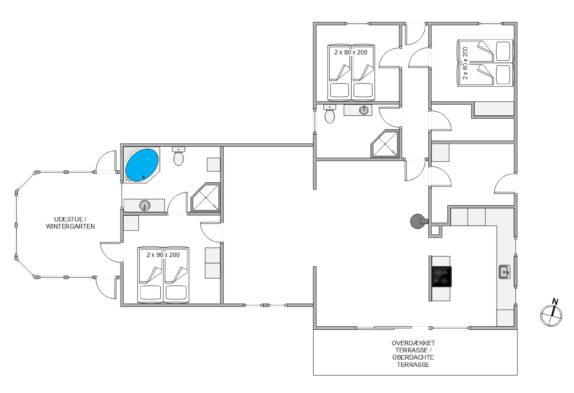 Der Wintergarten bietet einen lichtdurchfluteten Rückzugsort, der unabhängig von der Jahreszeit genutzt werden kann. Bereits im Frühjahr, wenn die Temperaturen noch recht erfrischend sein können, werdet ihr das Gefühl haben, draußen zu sein. Geschützt und die ersten Sonnenstrahlen genießend spielt ihr eine Runde Karten oder lest endlich einmal das tolle Buch, welches ihr schon so lange auf eurer to-do-Liste habt. Im Gartenbereich könnt Ihr auf der abgeschirmten oder überdachten Terrasse grillen und die frische Luft genießen. Der Garten bietet Kindern Platz zum Spielen – Schaukel und Sandkasten sind vorhanden.