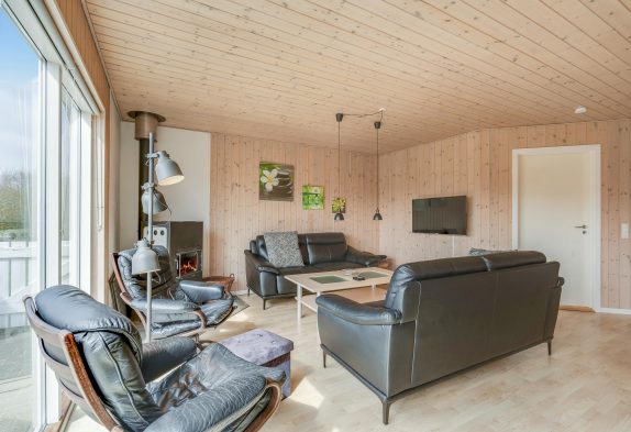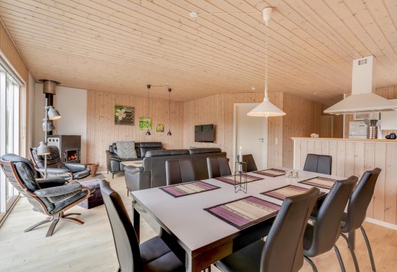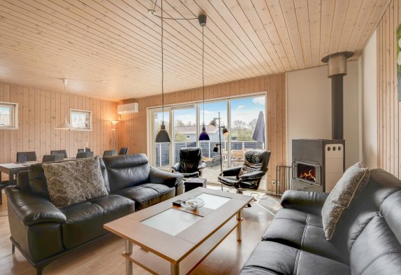 Der Innenbereich Eures Ferienhauses in Bork Havn bietet Euch ein echtes Zuhause fernab der Heimat. Der gemütliche Wohnbereich lädt zum Verweilen ein und wird schnell zum Lieblingsort für die ganze Familie. Der knisternde Kaminofen sorgt an kühleren Tagen für eine behagliche Atmosphäre, ideal für entspannte Abende mit einem guten Buch oder einem spannenden Film.