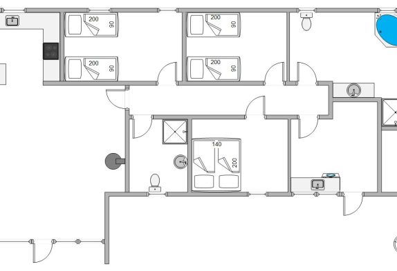 Es befinden sich 3 gemütliche Schlafzimmer und ein praktisches Bad mit Whirlpool für entspannte Stunden im Haus, die wie der Rest des Hauses liebevoll und modern eingerichtet sind. Im Haus findet ihr auch eine Waschmaschine, einen Trockner und eine energiesparende Wärmepumpe, die für eine angenehme Raumtemperatur sorgt. Für Regentage stehen euch im Haus 3 Flachbildschirme zur Verfügung.