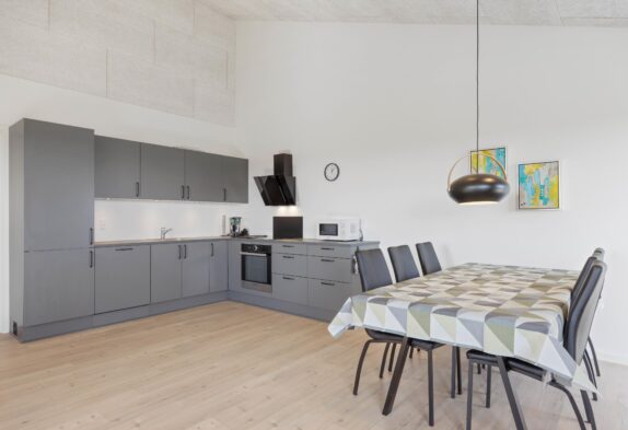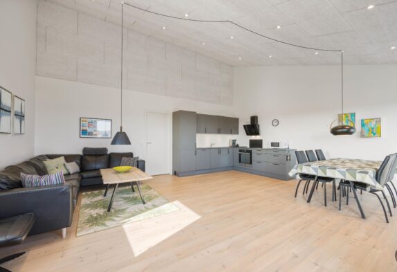 Die Ferienwohnung auf Houvig Klitvej 8A wurde 2019 gebaut, und die 93 Quadratmeter sind in einem hellen und modernen Stil eingerichtet worden. Der Aufenthaltsraum mit Wohnzimmer, Essbereich und integrierter Küche bildet das Herz der Wohnung.