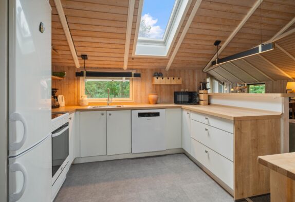 Es gibt drei Schlafzimmer, sodass sich jeder im Urlaub zurückziehen kann. Im großen Badezimmer mit einer Waschmaschine und einem Wäschetrockner bekommt niemand kalte Füße durch die Fußbodenheizung. Allgemein ist das Ferienhaus im Skovvang 49 hell eingerichtet und bietet euch das dänische Flair eines typischen Familienhauses.