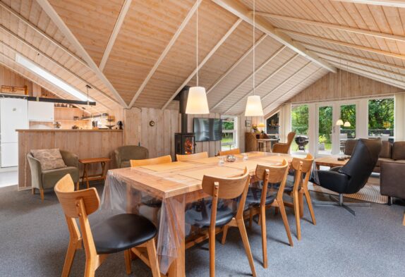 Dieses tolle Ferienhaus liegt in Houstrup auf Skovvang 49 und strahlt den Begriff „Hygge“ auf dem gesamten Gelände aus. Du wirst überall im Haus und außerhalb kleine liebevolle Details und gemütliche Ecken finden, wo du deine Seele baumeln lassen kannst und dich mit deiner Familie oder deinen Freunden vom Alltagsstress erholen kannst. Euch stehen außerdem ein tolles Außengelände mit einem großen Innenhof, mehreren Terrassen und einem Shelter zur Verfügung.