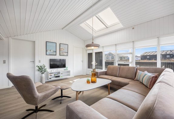 Dieses strandnah gelegene, helle Ferienhaus in Søndervig liegt zentrumsnah im Lodbergsvej 405. Es ist geräumig und für bis zu 6 Personen und 1 Hund geeignet. 2 Badezimmer sind vorhanden, weshalb ihr hier auch gut Urlaub mit Freunden machen könnt. Eine Sauna und ein Whirlpool, in denen ihr entspannt, sind vorhanden, sodass der Urlaub am Meer gleich mit einer kleinen Wellnesseinheit verbunden wird. Die geschlossene Terrasse wird insbesondere Familien mit kleinen Kindern sowie Hundebesitzer ansprechen – hier geht so schnell keiner verloren. Euer Auto ist im Carport gut aufgehoben und solltet ihr Fahrräder dabei haben, könnt ihr diese gut auf der geschlossenen Terrasse unterstellen.