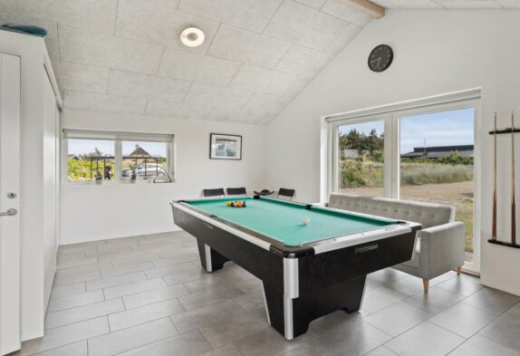 Im Hjelmevej 76, im südlichen Teil von Søndervig liegt dieses tolle Aktivitätshaus für bis zu 10 Personen und 2 Hunde. Im großen Whirlpool finden bis zu 4 Personen Platz und auch die Sauna lädt zum Entspannen ein. Unterhaltung, Spiel und Spaß sind beim Tischtennis oder Billard garantiert – freut euch auf aktive Tage mit eurer ganzen Familie oder euren Freunden. Auch eure Hunde sind hier gern gesehene Gäste.