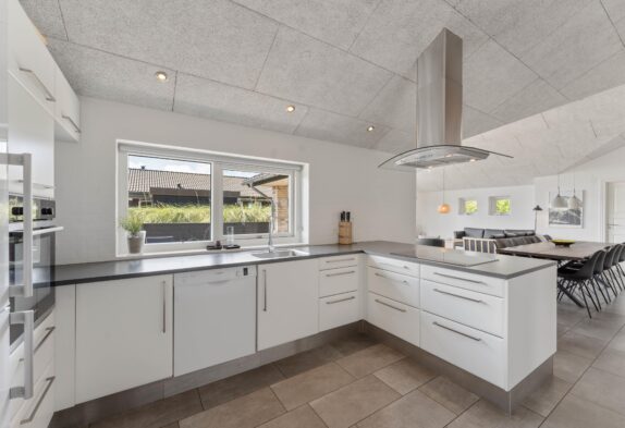 Dieses 120 m2 große 10-Personen-Aktivitätshaus mit 2 Badezimmern sowie 4 Schlafzimmern eignet sich ideal für eine große oder zwei kleine Familien, welche gerne gemeinsam Urlaub machen möchten. Die große Küche wurde offen zum Ess- und Wohnbereich gestaltet, sodass ihr auch beim Kochen am Familienleben teilhaben könnt. Der Geschirrspüler übernimmt den Abwasch für euch und ihr könnt es euch währenddessen entweder relaxt auf dem Sofa mit einem leckeren Getränk gemütlich machen oder wahlweise eine Runde Billard oder Tischtennis spielen. Langeweile ist in diesem schönen Ferienhaus in Søndervig kein Thema.