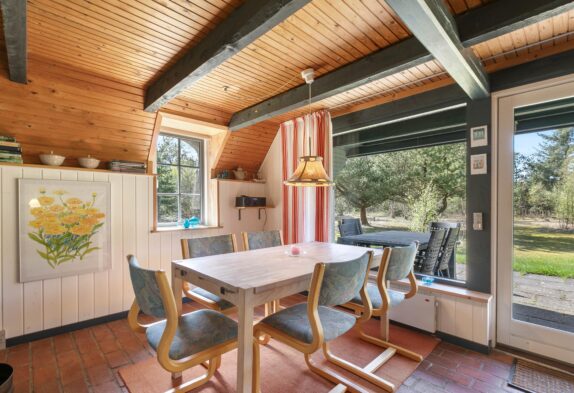 Dieses perfekt in die Natur eingepasste Ferienhaus im Gaffelbjergvej 20 ist gemütlich und zugleich auch praktisch eingerichtet. Im grossen Wohn- und Essbereich gibt es ausreichend Sitzmöglichkeiten, einen Flachbildfernseher sowie einen Kamin, welcher für eine angenehme Raumtemperatur und urgemütliche Urlaubsatmosphäre sorgen wird.