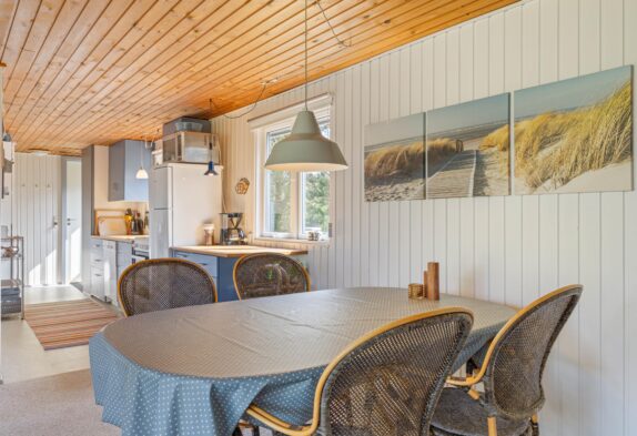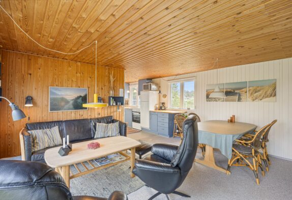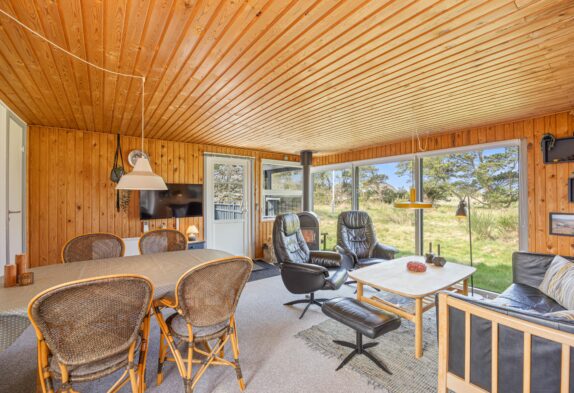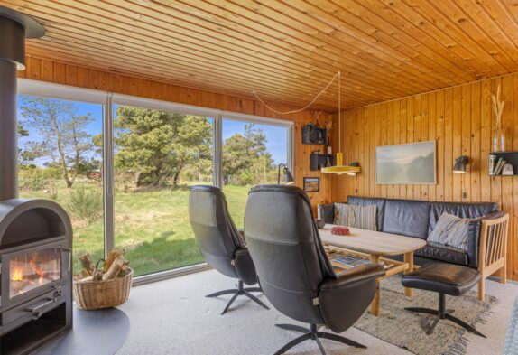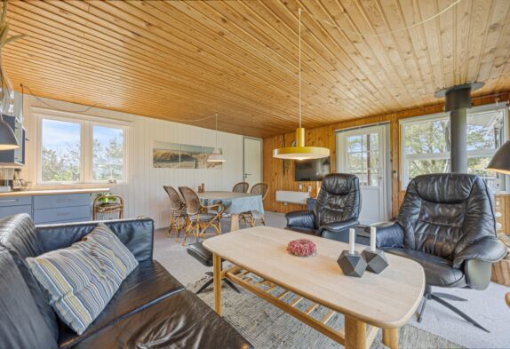 Hier wirst du dich mit deiner Familie von Anfang an wohl fühlen, denn das Ferienhaus im Sivsangervej 29 in Lodbjerg Hede wurde liebevoll und mit vielen Details eingerichtet. Die Holzoptik verleiht dem Haus einen charmanten Stil. Es gibt einen großen Gemeinschaftsbereich, der aus dem Wohnzimmer, der Küche und dem Essbereich besteht. Hier wurde auch der Kaminofen installiert, welcher dem Haus Wärme und eine schöne Atmosphäre spendet. Auf dem Sofa und am Esstisch könnt ihr spannende Brettspiele spielen oder die nächsten Urlaubstage planen.