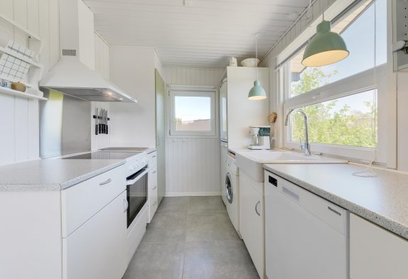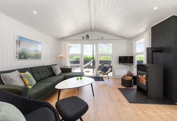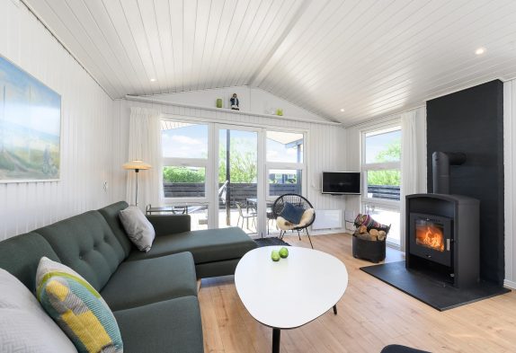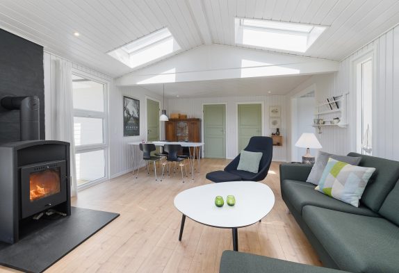 Mittelpunkt des Fereinhauses ist der Wohnbereich, in dem ihr euch an regnerischen Tagen auf das Sofa kuscheln könnt, während das Holz im Kaminofen knistert. Die Küche sowie der Rest des Hauses sind modern und mit schönen Materialien gestaltet. Bei längeren Aufenthalten ist die Waschmaschine von Vorteil und erspart euch unnötiges Gepäck.