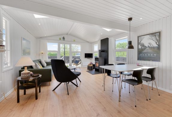 Das Ferienhaus liegt auf der Fjordseite von Holmsland Klit auf einem Naturgrundstück. Hier könnt ihr die Seele baumeln lassen und euch entspannen. Im Außenbereich steht euch nicht nur eine grandiose Terrasse zur Verfügung – nein hier könnt ihr saunieren und anschließend ein Bad in der beheizbaren Badetonne nehmen, dieses nicht alltägliche Vergnügen wird euch sicher noch lange in Erinnerung bleiben. Einmalig ist auch, die aufgehende Sonne mit eine Tasse Kaffee in der Hand zu beobachten.