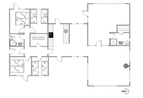 Dieses Ferienhaus verfügt über 2 Etagen und bietet insgesamt bis zu 8 Personen Platz. Im Erdgeschoss befindet sich eine traumhafte, offene Küche, die zum gemeinsamen Kochen und „Hygge“ wie wir in Dänemark sagen, einlädt.