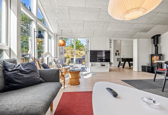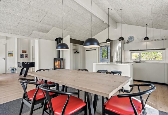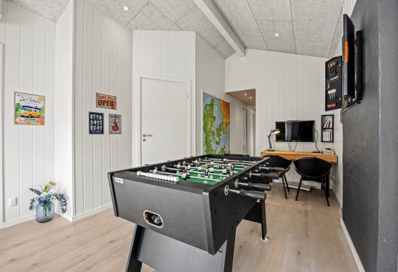 Die Stimmung im Tjursvej 18 ist angenehm und somit perfekt für eine große Familie oder eine Gruppe von Freunden mit 2 Hunden. Die Einrichtung und Raumaufteilung sind traumhaft und der Kaminofen sorgt zusätzlich für eine tolle Atmosphäre. Der Gemeinschaftsraum besteht aus der modernen und gut ausgestatteten Küche, dem großen Esstisch und der der gemütlichen Sofaecke. In der Küche können sich alle 6 Mitreisenden aufhalten, egal ob beim Kochen oder gegenüber auf den Barhockern beim Zuschauen. Gleich nebenan im Flur befinden sich der Tischkicker sowie ein Dartspiel und eine Wii: Wer nach Abwechslung sucht, kann am Tischkicker kleine Turniere abhalten oder sich mit anderen beim Dartspiel messen
