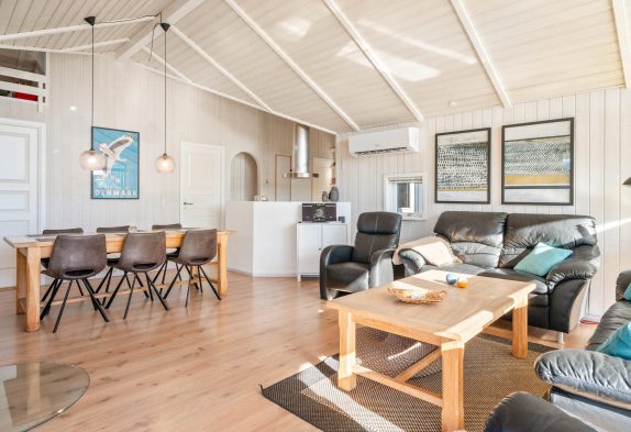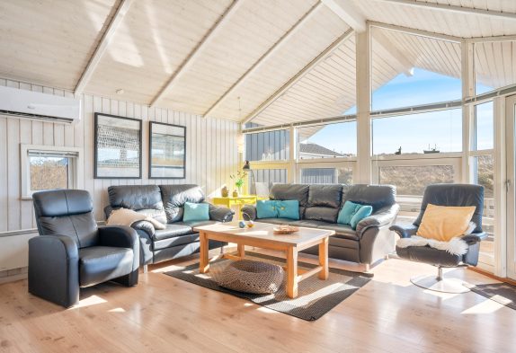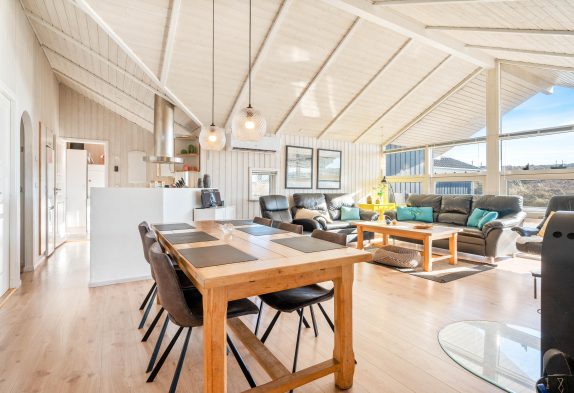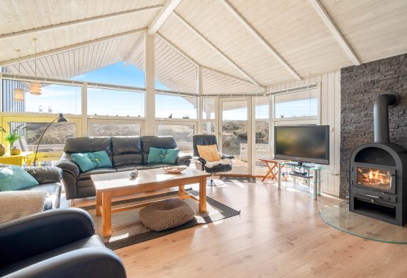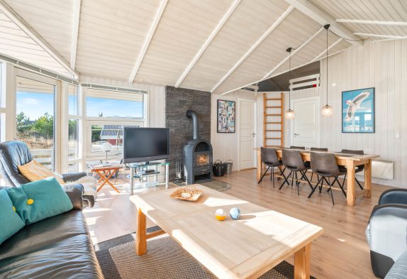 In dem schönen Holzferienhaus in Bjerregard ist Platz für 6 Personen und eure geliebten Vierbeiner sind auch gern gesehene Gäste. Im Innenbereich erwarten euch ein schöner Wohnraum mit Kaminofen und Zugang zu einem Schlafboden, sowie eine große Fensterfront mit Blick auf die Terrasse.