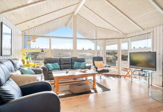 Mitten in einem der beliebtesten Ferienhausgebieten an der Westküste findet ihr im Bjerregårdsvej 233 dieses gemütliche Ferienhaus. Das Ferienhaus liegt auf einem kleinen Hügel nur 450 m vom breiten Nordseestrand entfernt und lädt nach einem ausgiebigen Strandspaziergang zu einem Saunagang mit anschließendem Bad im Whirlpool ein.