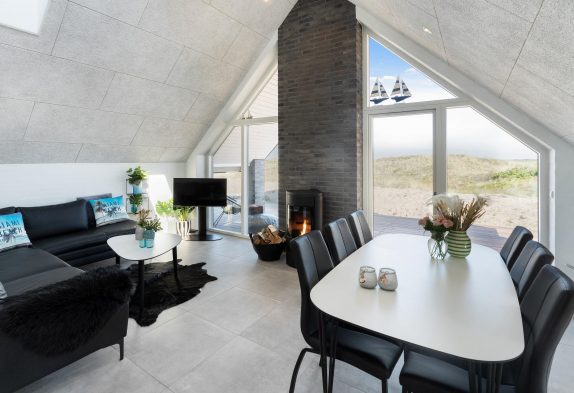 Die offene Terrasse ist ideal für Sonnenanbeter und der überdachte, abgeschirmte Außenbereich bietet euch Schutz, wenn ihr eher ein schattiges Plätzchen bevorzugt. Der gesamte Terrassenbereich ist wunderbar angelegt und stilvoll ausgestattet – perfekt, um den ganzen Tag an der frischen Luft zu verbringen. Geht einmal zu der kleinen Bank auf der Düne und schaut euch die Umgebung an – es ist einfach wunderschön hier auf Opstrupsvej 50.