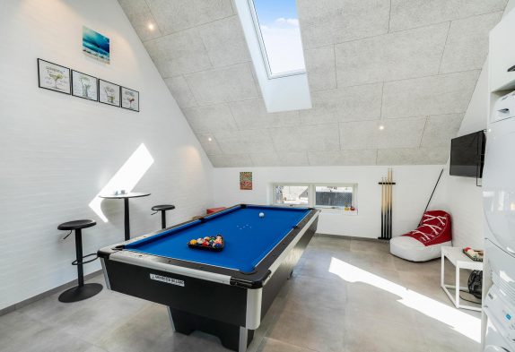 Wenn ihr euren Urlaub in der Natur und nah am Meer verbringen wollt, dann ist das Luxusferienhaus im Opstrupsvej 50 in Klegod genau das Richtige. Am Ende des Weges und angrenzend an ein geschütztes Naturgebiet hat dieses Luxusferienhaus eine ruhige Lage. Mit seiner modernen Einrichtung sowie Badetonne auf der Terrasse, Sauna, Aktivitätsraum mit Poolbillard, Schaukel, Sandkasten und Rutsche für die Kinder, könnt ihr Luxus, Entspannung und Familienleben in vollen Zügen genießen. Und auch eure 2 Hunde werden sich hier wohlfühlen. Eine Ladestation für euer Elektroauto steht euch hier ebenfalls zur Verfügung.
