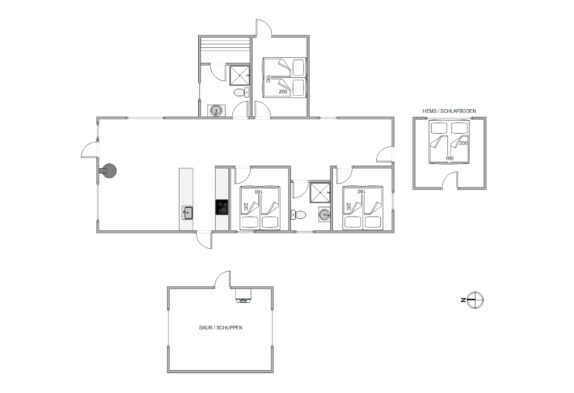 Vom offenen Dachboden, den ihr über eine Leiter erreicht, habt ihr einen wunderbaren Panoramablick auf die tolle Umgebung und den nahegelegenen Fjord. Hier gibt es einen gemütlichen Rückzugsort, der guten Schlaf auf einer großen Doppelmatratze (180x200cm) und einen wundervollen Sonnenaufgang garantiert.