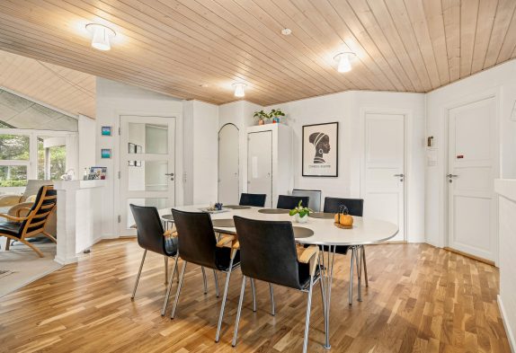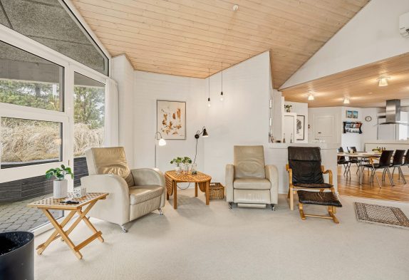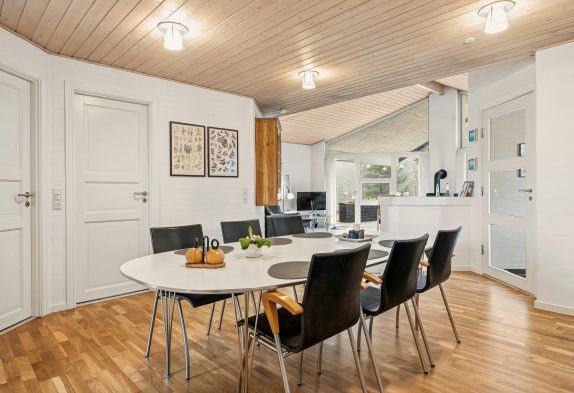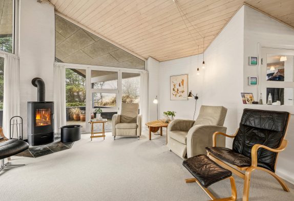 Egal, in welchem Bereich des Ferienhauses ihr euch befindet, ihr werdet euch immer wohlfühlen. Durch die große Fensterfront im Wohnbereich kommt das ganze Jahr hindurch die Sonne ins Haus. Vom Sofa aus kannst du die wohlige Wärme des Kaminofens genießen, während du eine Tasse Kaffee trinkst. Gleich neben der Wohnecke steht der Esstisch, wo du viele Spieleabende mit deiner Familie oder deinen Freunden veranstalten kannst.