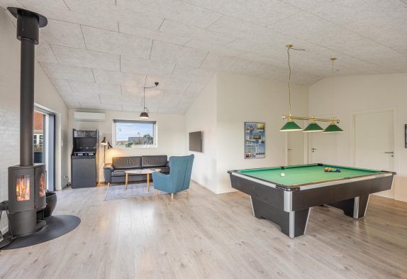 Das Haus hat viele Besonderheiten im Innen- und Außenbereich, so könnt ihr euch über einen Aktivitätsraum mit Poolbillard und Kaminofen freuen. Im Wohnbereich steht euch neben der schnellen Internetverbindung auch ein Flachbildschirm mit deutschen und dänischen Kanälen zur Verfügung. Bitte beachtet, dass die Auswahl an deutschen Fernsehprogrammen jedoch beschränkt ist.