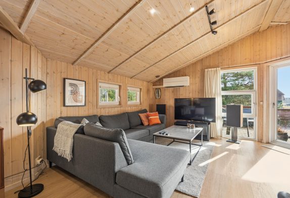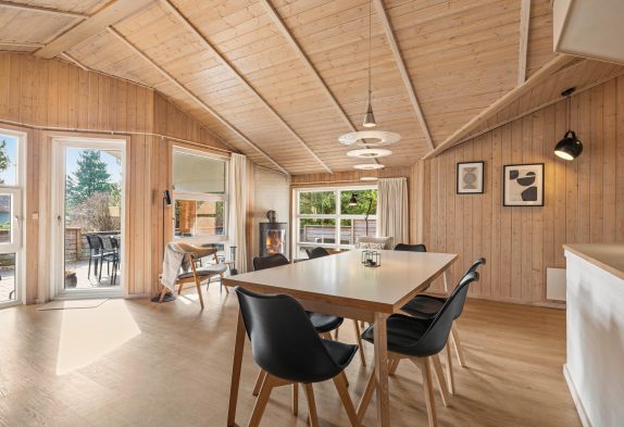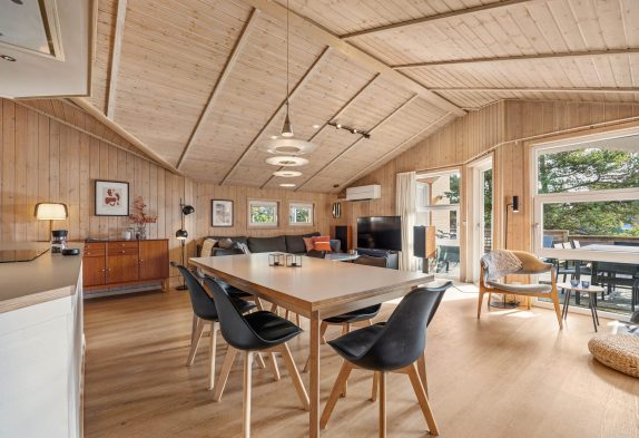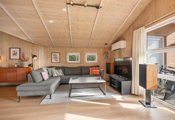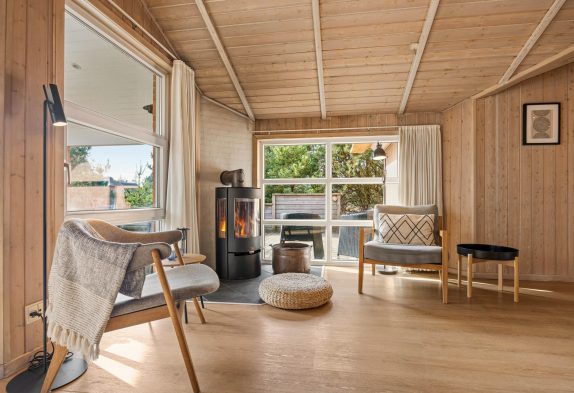 Dieses im Ingridsvej 32, schön und von Bäumen und Büschen abgeschirmt liegende Reetdachhaus strahlt eine gemütliche und heimelige Atmosphäre aus. Ein Kamin, welcher im Wohnzimmer untergebracht ist, sorgt insbesondere am Abend für eine entspannende und typisch dänische Gemütlichkeit – Hygge pur.