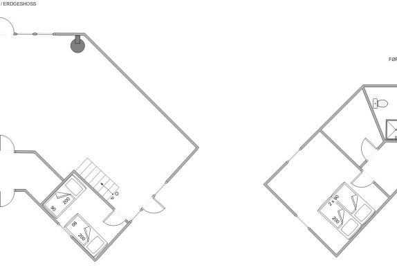 Insgesamt verfügt das Ferienhaus über 2 Badezimmer, wobei sich ein Badezimmer gemeinsam mit zwei der insgesamt 5 Schlafzimmer im Obergeschoss des Hauses befindet. Eine offene Treppe führt vom Wohnzimmer hinauf in den 1. Stock.