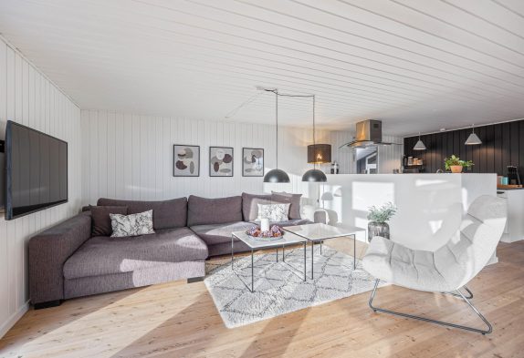 Dieses absolut einladende Ferienhaus verfügt nicht nur über eine tolle Lage, denn auch von Innen kann es überzeugen. Mit den großen Fenstern lässt es den ganzen Tag über die Sonne in das Ferienhaus. Der Wohn- und Essbereich wurde miteinander kombiniert, damit du dich mit allen im Raum angenehm unterhalten und die nächsten Urlaubsaktivitäten planen kannst. Für ein angenehmes Raumklima sorgt zusätzlich die energiefreundliche Wärmepumpe.