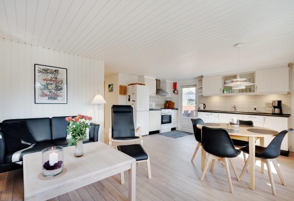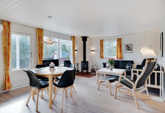 Das kleine, von Außen rot gestrichene Ferienhaus erinnert sofort an Ferien in Skandinavien – es strahlt geradezu und ganz bestimmt werdet ihr euch hier sofort wohlfühlen.