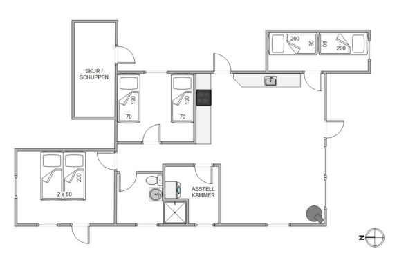 Insgesamt gibt es im Haus 3 Schlafzimmer, welche sich gut verteilen. Denn das Kinderzimmer mit Einzelbetten liegt etwas abseits, sodass die Kleinen schon selig schlummern und neuen Abenteuern entgegen träumen, während ihr es euch am Abend vor dem Kamin bei einem Gläschen Wein gemütlich macht.