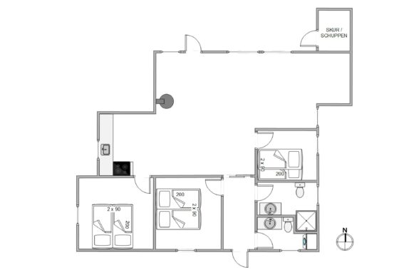 Das Ferienhaus besticht durch sein gemütliches, helles Wohnzimmer, das dank eines Oberlichts viel Tageslicht erhält. Die offene Küche mit Essbereich fügt sich harmonisch in den Raum ein und schafft eine besonders hyggelige Atmosphäre. Die gut ausgestattete Küche bietet alles, was ihr für die Zubereitung von leckeren Mahlzeiten braucht, inklusive eines Geschirrspülers, um die Zeit nach dem Essen angenehm und unkompliziert zu gestalten. Ein Kaminofen sorgt nicht nur für wohlige Wärme, sondern auch für das typische Urlaubsfeeling. Für angenehme Temperaturen sorgt bei Bedarf die energiesparende Wärmepumpe, die das ganze Haus effizient beheizt.