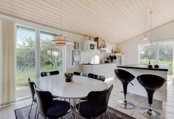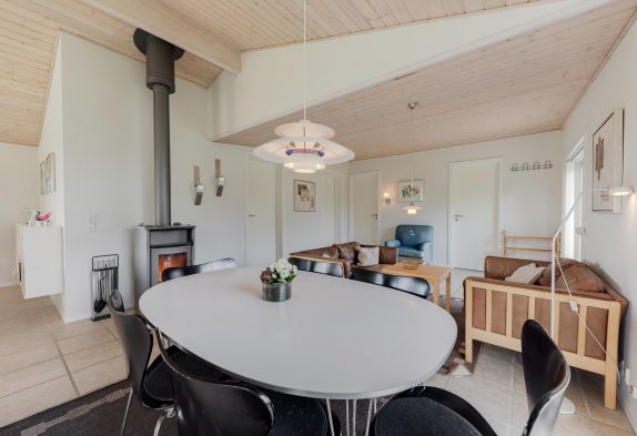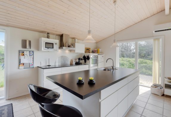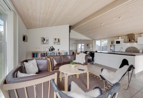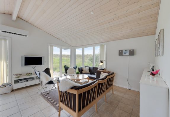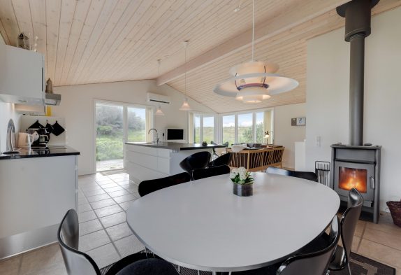 Die Einrichtung ist hell, freundlich und praktisch mit Geschirrspüler, Waschmaschine und Trockner. Vom Wohnzimmer mit integrierter Küche und Essbereich habt ihr einen fantastischen Ausblick auf die unmittelbar vor der Tür liegende Dünenlandschaft. Abends und an kühleren Tagen sorgt der Kamin für angenehme Wärme und Gemütlichkeit. Kuschelt euch aufs Sofa und schaut gemeinsam einen spannenden Film oder steckt die Nase mal wieder in ein gutes Buch.