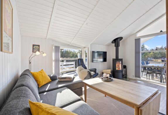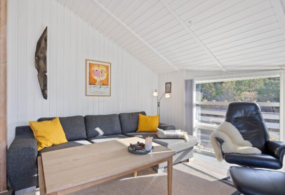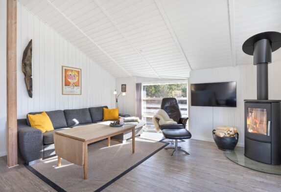 In einem Seitenweg vom Bjerregårdsvej findet ihr die Nr. 142 auf einem Naturgrundstück gelegen. Hier findet ihr ein ideales Ferienhaus für einen erholsamen Familienurlaub. Nur knapp einen Kilometer vom Strand liegt dieses gemütliche Ferienhaus mit schöner Terrasse, Kaminofen und Badezimmer mit Sauna und Whirlpool.