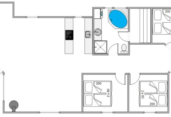 Das Badezimmer ist mit einer Fußbodenheizung ausgestattet, aber für warme Füße sorgen auch der Whirlpool und die Sauna. Hier im Badezimmer könnt ihr richtig schön entspannen nachdem ihr mit den Kindern am Strand getobt habt.