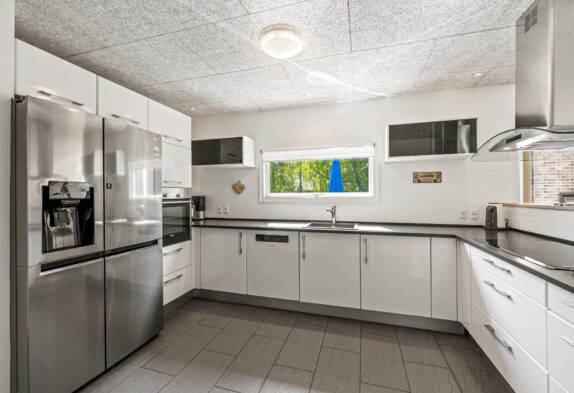 Die Küche liegt in offener Verbindung zum Wohnzimmer sowie einem großen Essbereich, wo sich alle versammeln und lecker gemeinsam essen können. Ein Kamin sorgt an kühleren Abenden für kuschelige Temperaturen wobei das Haus aber auch über eine energiesparende Wärmepumpe verfügt und somit immer angenehme Temperaturen herrschen.