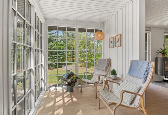 Wer sich einmal zurückziehen mag, um z.B. ein Buch zu lesen, der findet ganz sicher einen Rückzugsort im Wintergarten. Hier könnt ihr es euch in den Korbstühlen zurecht machen und wirklich im Urlaub in Houstrup die Seele baumeln lassen.