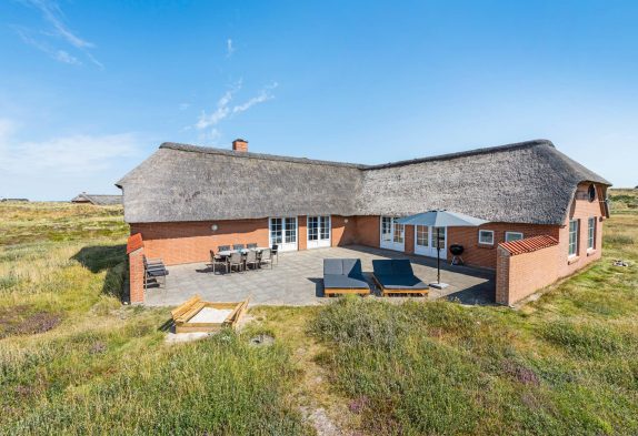 Die Terrasse ist befestigt und hier könnt ihr dank der Gartenmöbel, Liegestühle und des Grills das Leben bei gutem Wetter einfach nach draußen an die frische Luft verlegen. Von der Terrasse habt ihr einen tollen Blick auf die gesamte Umgebung. Die offene Heidelandschaft sowie die Dünen bieten eine tolle Aussicht und nur das Gezwitscher der Lerchen sowie das Rauschen der Brandung ist hier zu hören. An manchen Tagen gibt es natürlich auch einmal Sturm, dann solltet ihr alles gut sichern aber unbedingt zum nage gelegenem Strand marschieren. Es ist einfach fantastisch, sich gegen den Wind zu stellen und die Kräfte der Natur hautnah zu spüren.