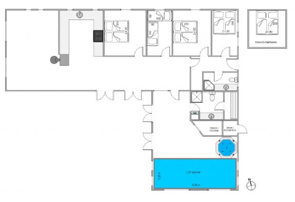 Insgesamt stehen euch 5 Schlafräume zur Verfügung. Vier Doppelbetten und 2 Einzelbetten lassen bis zu insgesamt 10 Personen einen Schlafplatz finden. Der Schlafboden ist eher für die Kinder gut geeignet, wo diese sicher gern ihr eigenes Reich in Beschlag nehmen werden.