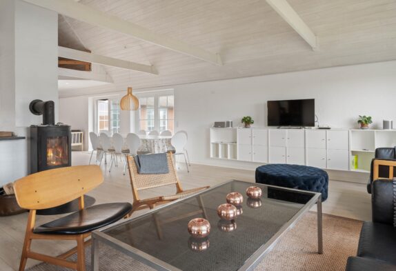 Nur wenige Minuten vom Strand Vester Husbys entfernt liegt dieses Reetdachhaus mit Pool, Standwasserwhirlpool und Sauna. Insgesamt gibt es auf 196 Quadratmetern Platz für bis zu 10 Personen und auch 2 Hunde dürfen euch herzlich gern auf Gaffelbjergvej 83 begleiten. Solltet ihr mit einem Elektroauto anreisen, könnt ihr dieses über die Lademöglichkeit, mit eurem eigenen Ladekabel / Adapter, am Ferienhaus laden.