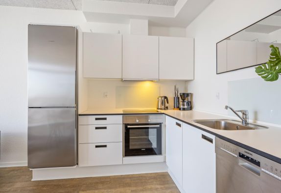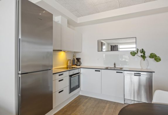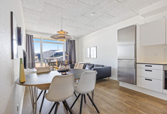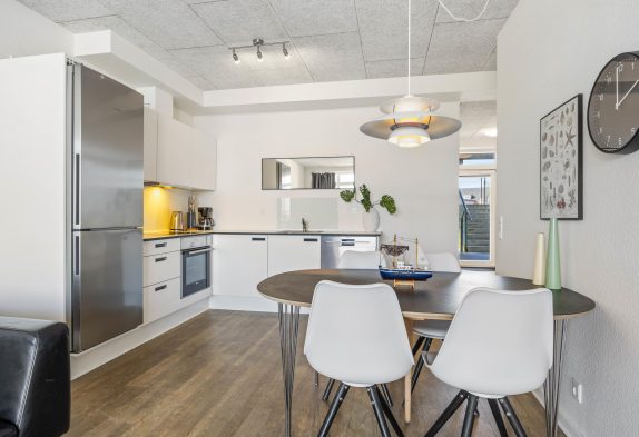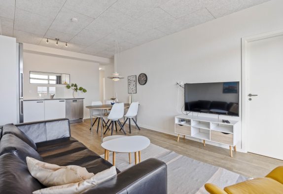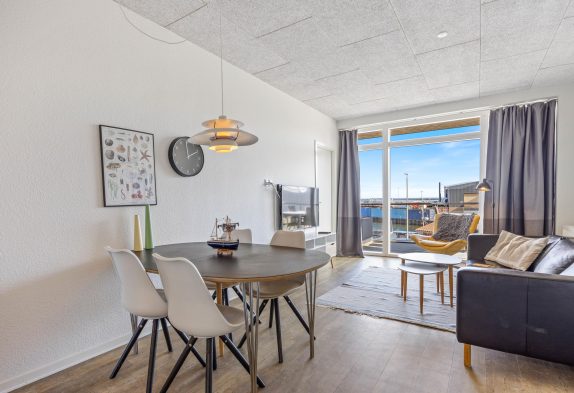 Wer es gern bequem und zentral mag, sollte sich unbedingt einmal dieses tolle Appartment ganz genau anschauen. Zentral in Hvide Sande – im südlichen Teil – und ganz nah an der Schleuse sowie mit Blick auf das Wasser liegt diese Ferienwohnung in der 1. Etage eines Appartmentkomplexes, welcher in 2017 erbaut wurde.