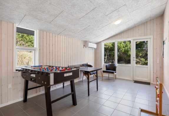 Besonderes Highlight ist der Aktivitätsraum, wo ihr euch nicht nur an Regentagen bei einer Partie Kicker oder Tischtennis herausfordern könnt. Und wem beim Spielen noch nicht warm genug geworden ist, kommt in der hauseigenen Sauna auf jeden Fall ins Schwitzen. Im Badezimmer findet ihr auch eine Waschmaschine, was besonders Familien mit kleineren Kindern zu schätzen wissen.