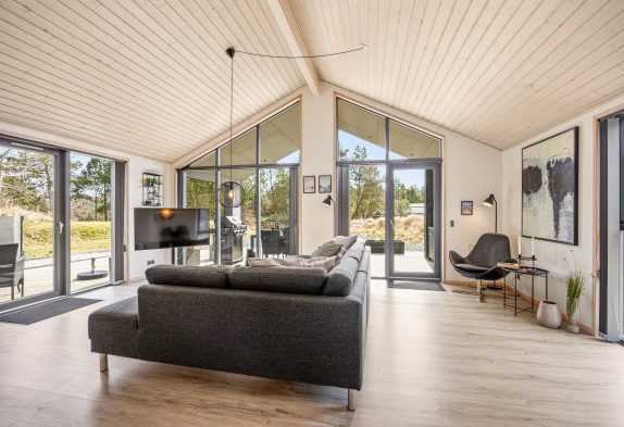 Dieses Ferienhaus in Blåvand bietet Platz für bis zu 8 Personen und lädt euch zu einem luxuriösen Urlaub an der Nordsee ein. Ein modernes Interieur mit Aktivitätsraum, Infrarotsauna, Außenwhirlpool auf der Terrasse und einer Bocciabahn sind nur einige Extras, die das schicke Ferienhaus auf Bjergbovej 16A zu bieten hat.