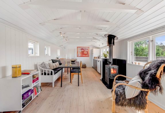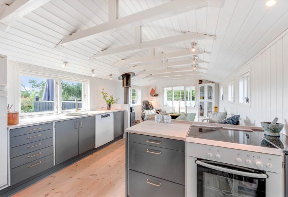 Das kleine Ferienhaus wurde in 2020 teilweise renoviert und die vielen kleinen Details verleihen den Räumen eine gemütliche und persönliche Atmosphäre. Die helle Küche mit Geschirrspüler sowie der sich anschließende Essbereich bilden das freundlich ausgestattete Zentrum des Hauses auf Bjerghuse 113.
