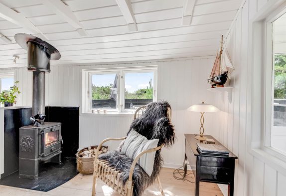 Ein Kamin sorgt schnell und zuverlässig für Wärme und wenn das Feuer brennt und das Holz knistert, kann es gemütlicher nicht werden. Eine Sitzecke befindet sich im Anschluss an den Hauptbereich und von hier habt ihr einen tollen Blick nach draußen – die vielen Fenster lassen die Sonne ins Haus und hier kann man sich auch einmal zurückziehen, um gemütlich in einem Buch zu schmökern.
