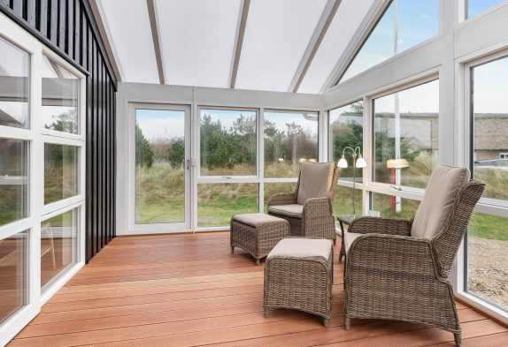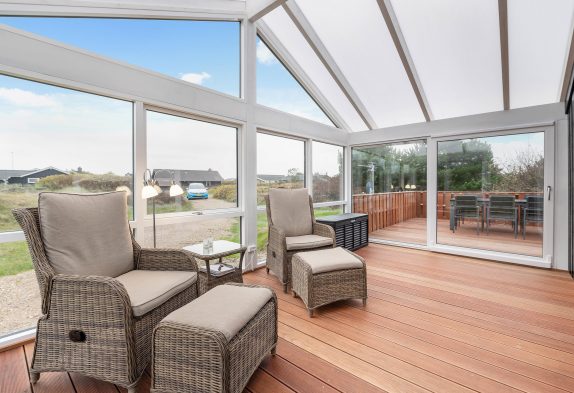 Das Ferienhaus wurde um eine überdachte, geschlossene Terrasse von ca. 18 Quadratmeter an der Südseite des Ferienhauses erweitert. Zusätzlich wurde die nach Westen ausgerichtete Terrasse um 5–6 Quadratmeter erweitert.