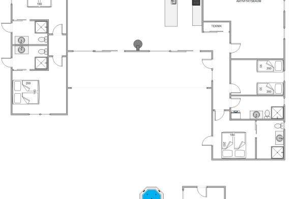Somit bietet sich dieses Haus besonders gut für einen Urlaub mit Freunden an, da jeder seine Privatsphäre und einen Rückzugsort hat. Auf den insgesamt 180 Quadratmetern Wohnfläche findet ihr unter anderem einen Aktivitätsraum, wo euch zur Unterhaltung ein Poolbillard Tisch und eine Dartscheibe erwartet.