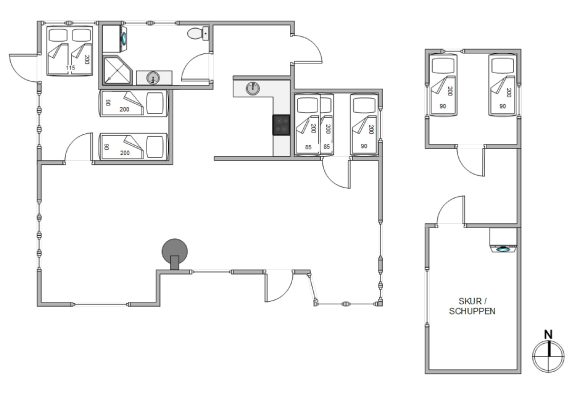 Das Badezimmer befindet sich im Haupthaus und verfügt über eine Fußbodenheizung, sodass ihr gerade am Morgen keine kalten Füße bekommt. Im Anbau befindet sich ein Schlafzimmer, wo sich vielleicht größere Kinder ihr eigenes Reich einrichten und sich vor den Erwachsenen zurückziehen können.