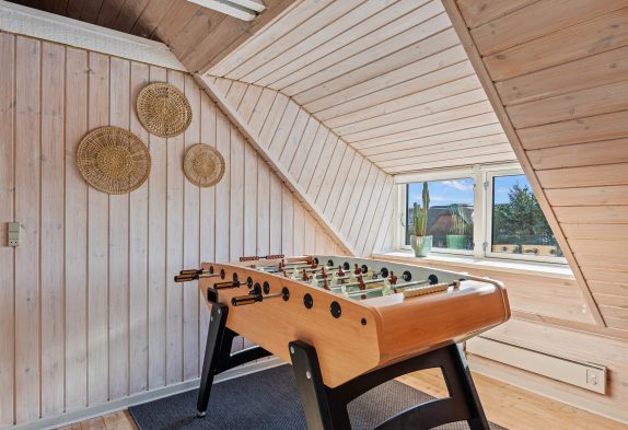 Das reetgedeckte Ferienhaus auf Ingridsvej 1, bietet auf zwei Etagen reichlich Platz für insgesamt 8 Personen. Die beiden Stockwerke sind durch eine Treppe innerhalb des Hauses miteinander verbunden. 2 Schlafzimmer, eine gemütliche Sitzecke mit tollem Ausblick sowie ein weiteres Badezimmer im Obergeschoss sind ideal, wenn ihr Freunde oder eure Teenager dabei habt, die auch einmal etwas für sich selbst sein wollen. Für Fussball begeisterte befindet sich in der 1. Etage ein Kickertisch, wo das ein oder andere Turnier gespielt werden kann, sowie in einem Nebengebäude einen Billardtisch.