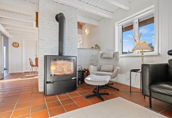 Die Einrichtung strahlt eine gemütliche Ferienhausatmosphäre durch aufgehellte Decken mit Holzbalken und klassischem Interieur aus. Im Wohnzimmer im Erdgeschoss befindet sich der Kamin, der garantiert das Zentrum vieler wunderbarer Urlaubsmomente in guter Gesellschaft bildet, mit den knisternden Flammen im Hintergrund.