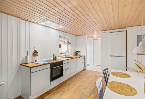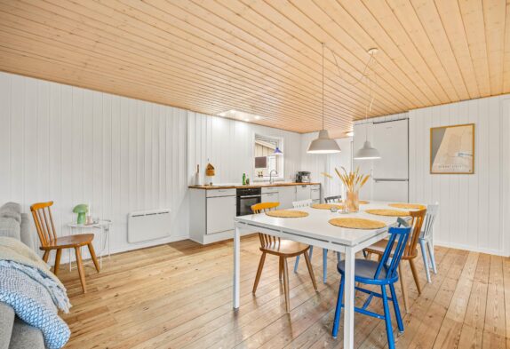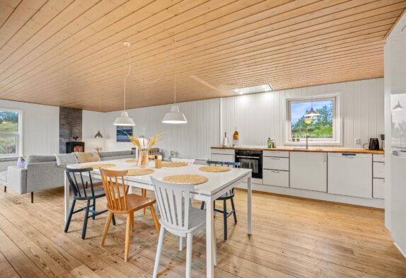Die Einrichtung des Hauses ist einfach, aber dabei trotzdem gemütlich und bietet mit Kamin im Wohnzimmer, einer Fernsehecke sowie der offen gehaltenen Küche mit Geschirrspüler alles, was ihr für einige ruhige und entspannte Tage im Urlaub braucht.