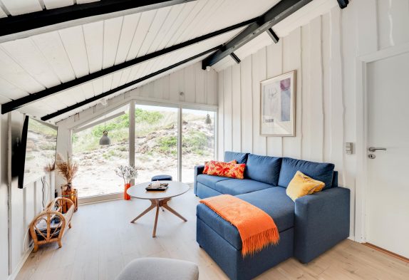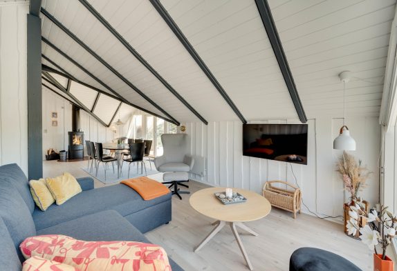 Im Herzen des Ferienhauses im Skodbjergevej 24 wirst du die meiste Zeit deines Urlaubs verbringen. Das interessant geschnittene Wohnzimmer grenzt direkt an den Essbereich und die offene Küche. Durch die großen Fenster im Wohnbereich scheint die ganze Zeit die Sonne hindurch, sodass es immer hell und freundlich ist. Selbst vom Sofa aus hast du einen wundervollen Blick auf die umliegende Natur.